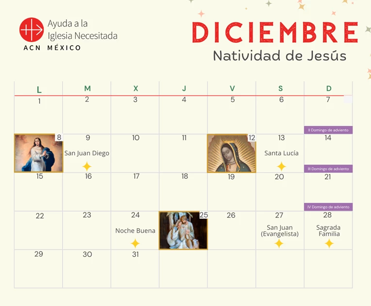 En este mes conmemoramos la fiesta de la Inmaculada Concepción (8 de diciembre) y la más esperada fiesta de la Emperatriz de América: Nuestra Señora de Guadalupe (12 diciembre). Diciembre también nos invita a no olvidar a quienes sufren pobreza, exclusión, discapacidad o persecución, y a responder con gestos concretos de amor.