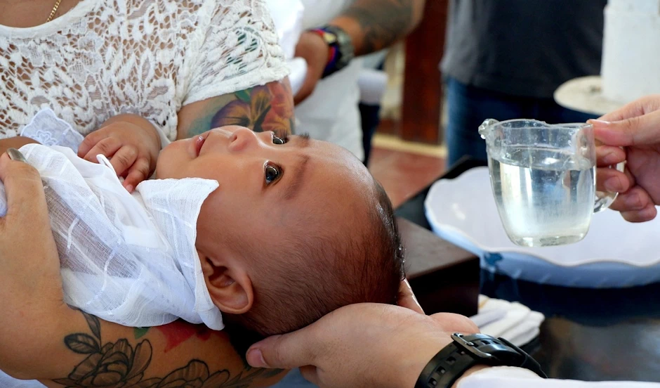 Por supuesto que el sacramento del Bautismo, para profundizar en su misterio, hay elementos significativos, como al inicio la Señal de la Cruz, la Proclamación de la Palabra de Dios, las unciones la del catecúmeno y después del agua, la unción con el santo crisma consagrado por el obispo; el ungido con el crisma, es Cristo-Mesías con Cristo-Mesías porque participa de la dimensión de Cristo-Mesías, Sacerdote, Profeta y Rey. Se le da la vestidura blanca, porque es revestido de Cristo como nueva creatura y se le da el cirio de la iluminación porque ha sido iluminado por Cristo. Como por el bautismo ya es hijo de Dios, en nombre de él y en el nuestro oramos con el Padre Nuestro, la oración que Jesús nos enseñó.