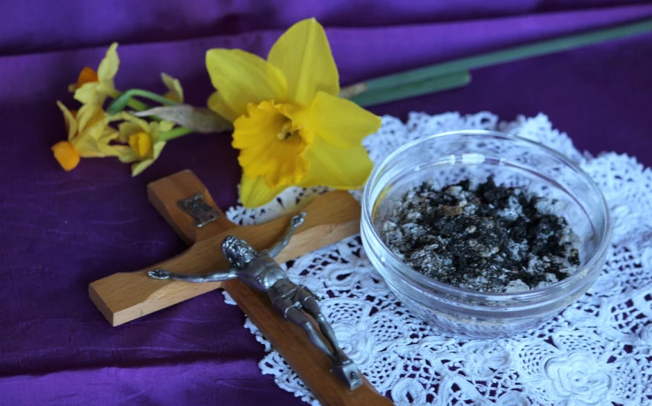 El Miércoles de Ceniza el cristiano recibe una cruz en la frente con las cenizas obtenidas al quemar las palmas usadas en el Domingo de Ramos previo. El Miércoles de Ceniza se nos invita a asistir a Misa para recibir la bendición de la ceniza. Las cenizas representan la propia fragilidad y mortalidad y nos recuerda que requerimos de la misericordia divina.