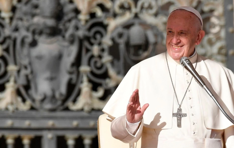 Ante la exquisitez y los excesos, la sencillez de los zapatos negros y la sotana blanca.